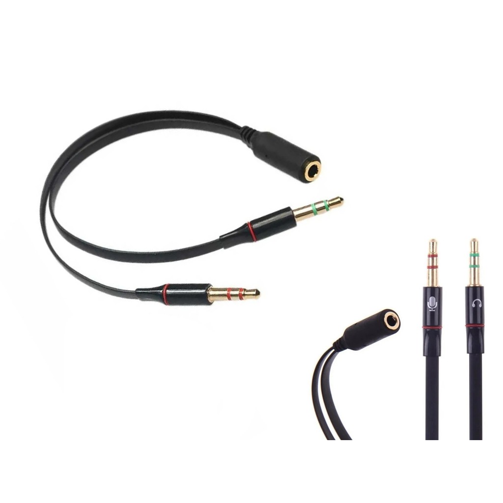 Cabo Adaptador audio 2 P2 Macho p/ 1 P3 Fêmea para fone com microfone Headset Pc Notebook