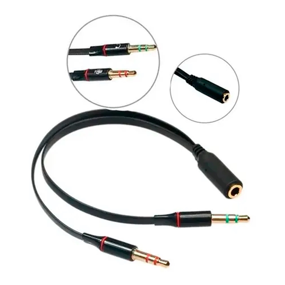 Cabo Adaptador audio P2,P3 1 Macho 2 Fêmea para fone com microfone Headset Pc Notebook