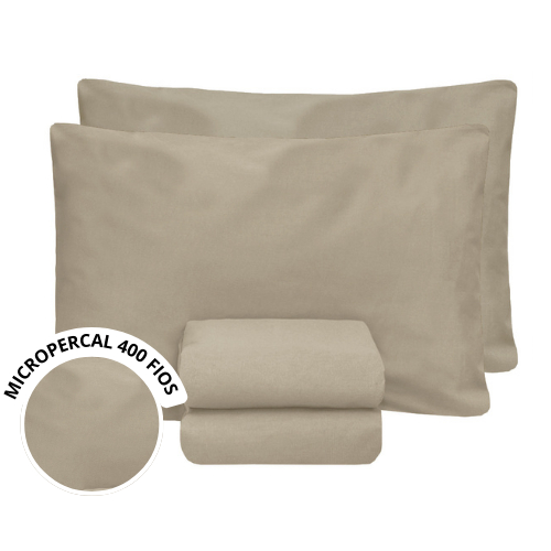 Kit Roupa Cama Jogo De Lençol Casal Queen MicroPercal 3pçs 400 fios Ponto Palito Macio Toque Acetina