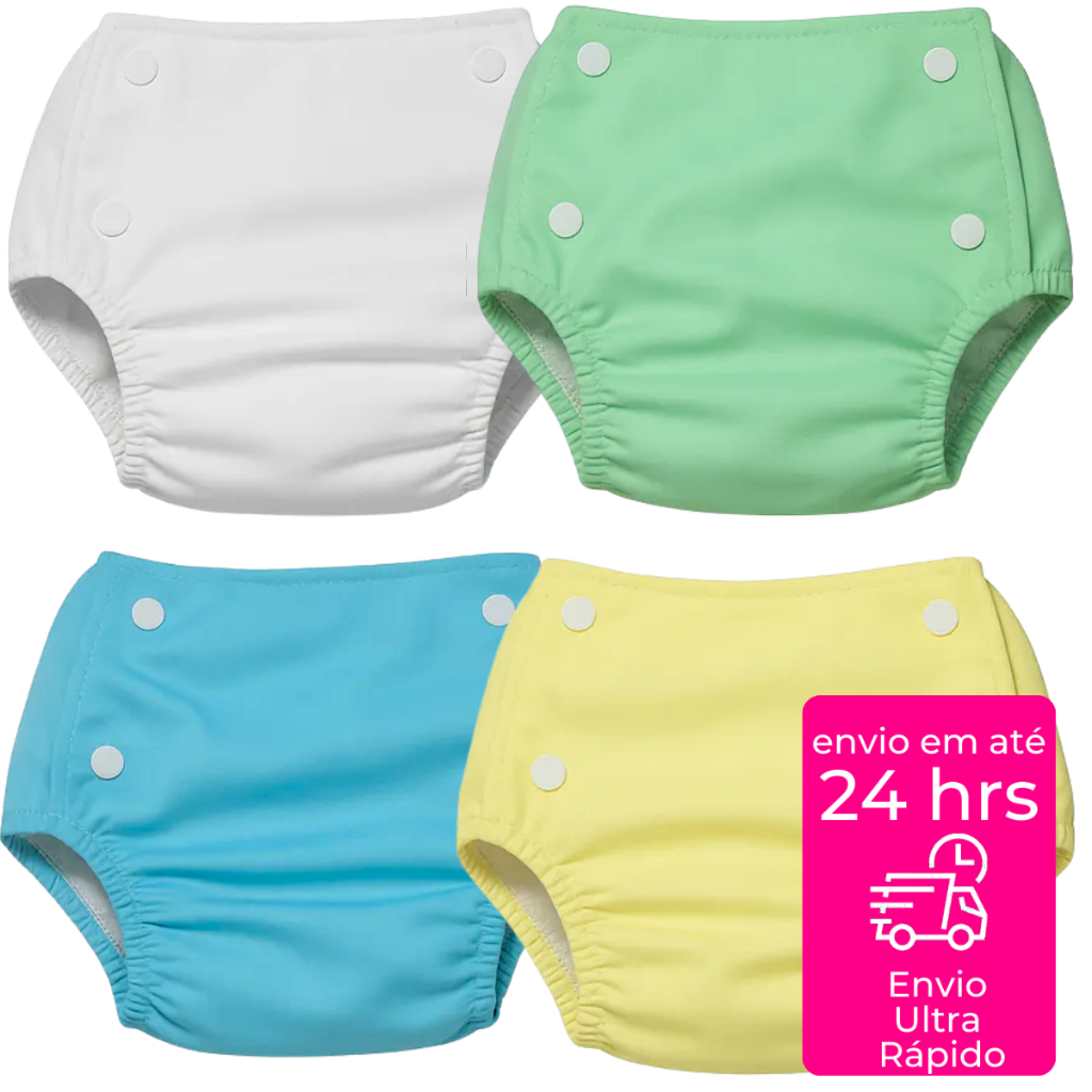 Pacote com 4 Fralda Plástica Calça Enxuta Reutilizável Ecológica Lisa Transição para Bebê Infantil Desfralde