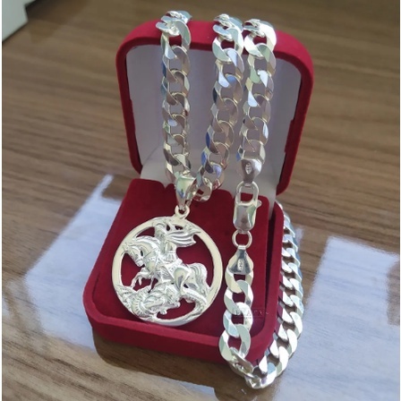 CORRENTE DE PRATA 10MM 70 CM GROSSA PRATA NACIONAL PINGENTE SAO JORGE GRAVADO 925 CORDAO CORRENTINHA GRUMET ESCAMA