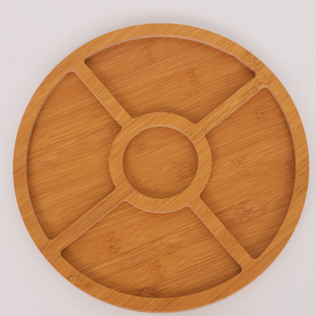Gamela Redonda Petisqueira Mdf 19.5X19.5X1,3CM com 5 divisórias para Petiscos Amendoim Churrasco
