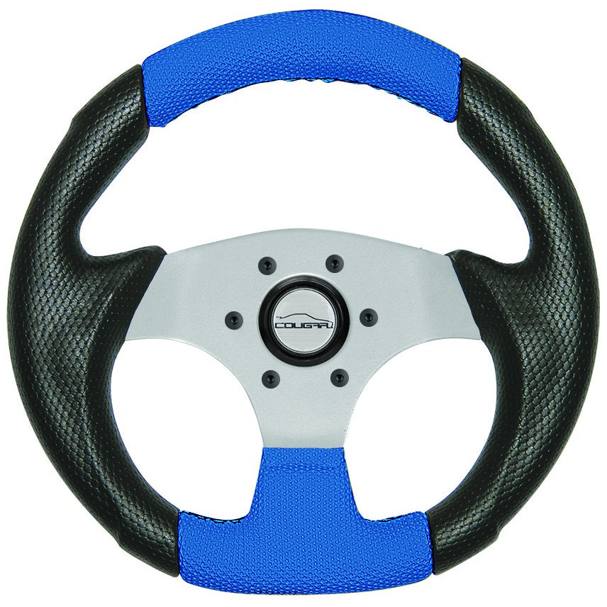 Volante pequeno Esportivo de 28 cm para Buggy e Fusca Prata e Azul Acessórios Automotivo