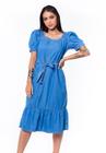 Vestido midi luxo duna lisa com babada na manga e renda na cintura 0014