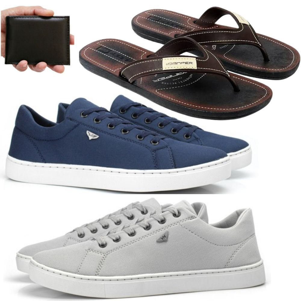Kit 2 Pares Tenis Sapatenis Masculino + 1 Par De Chinelo + Carteira Promoção