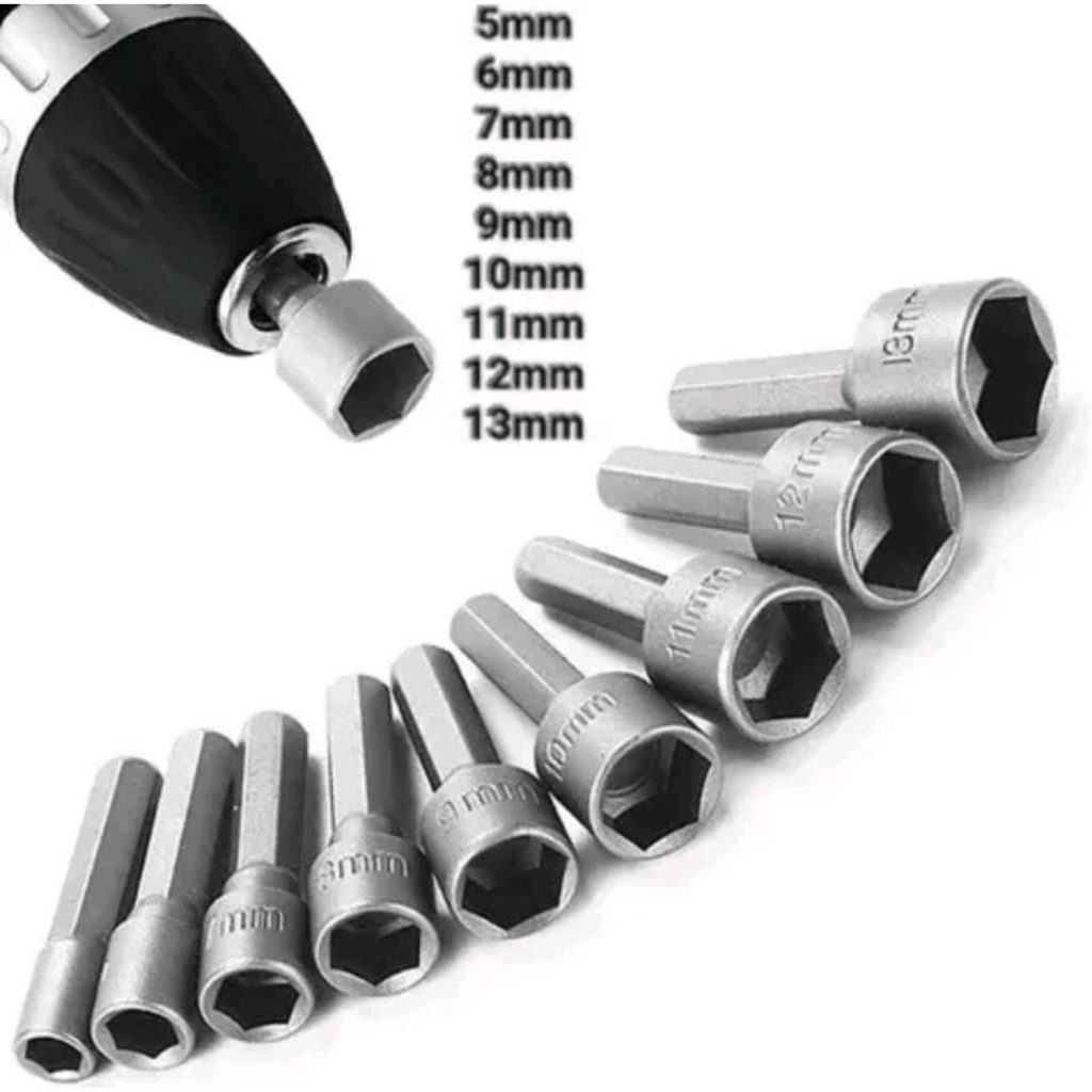 9 pçs Kit de Jogo de Bits Soquete Canhão para Parafusadeira 5 A 13mm