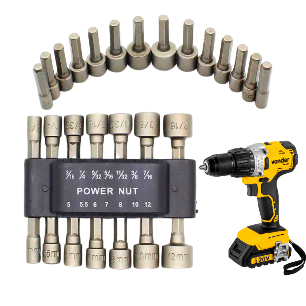 Kit de Jogo de Bits Soquete Canhão para Parafusadeira 5 A 12mm
