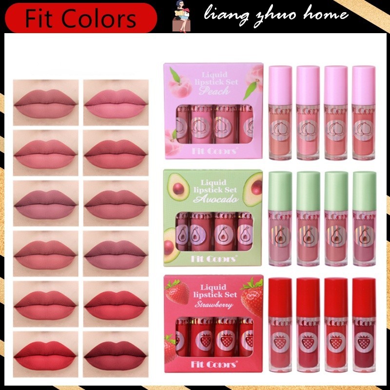 Cores De Ajuste 4Pcs/set Pêssego Pink Lasting Velvet Matte Lip Gloss Kit Batom Líquido Maquiagem Feminina Beauty Red Nonstick Cup Tinta Labial À Prova D'água