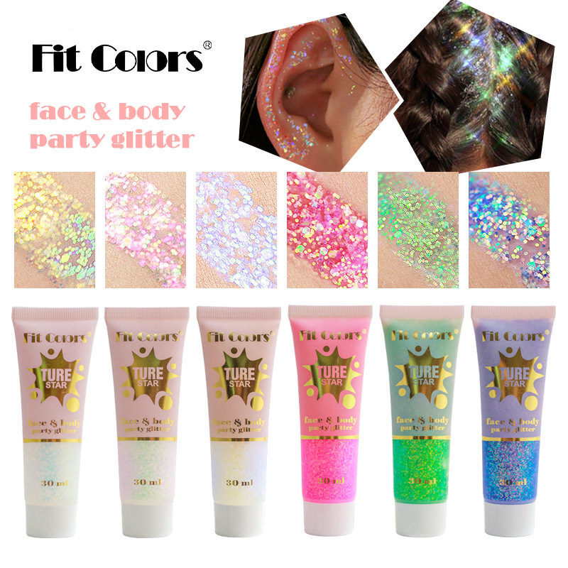 Cores de ajuste Starry Sky Tube Sequin Gel Camaleão Camaleão High Gloss Eyeshadow Face Lip Body Glitter 30ml