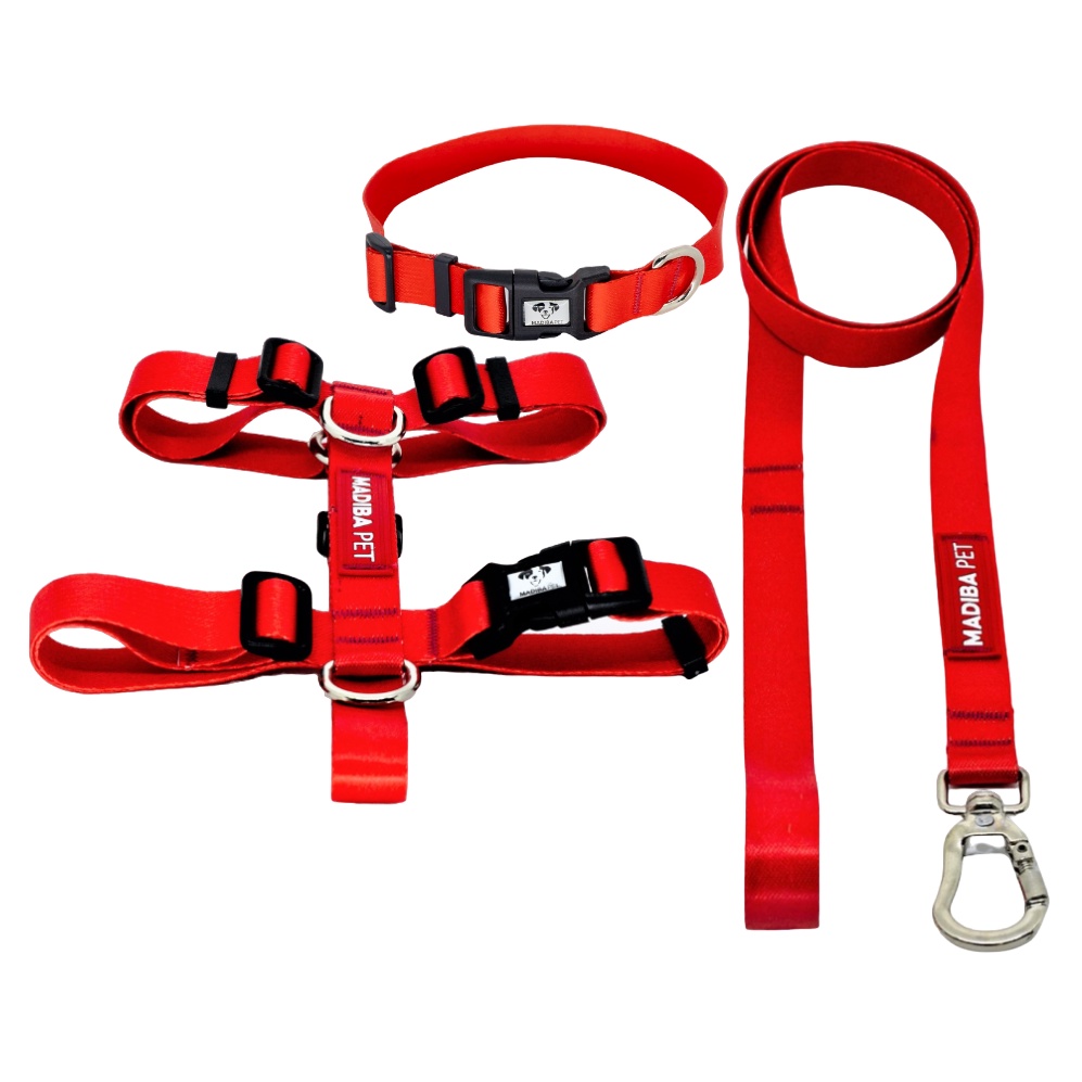 Kit Peitoral H, Coleira de Pescoço e Guia de Passeio Vermelho para Cachorros - Madiba Pet