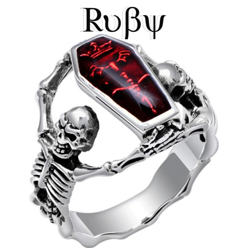 Ruby* Thai Prata Vampiro Morcego Crânio Anel Masculino Estilo Punk Dedo