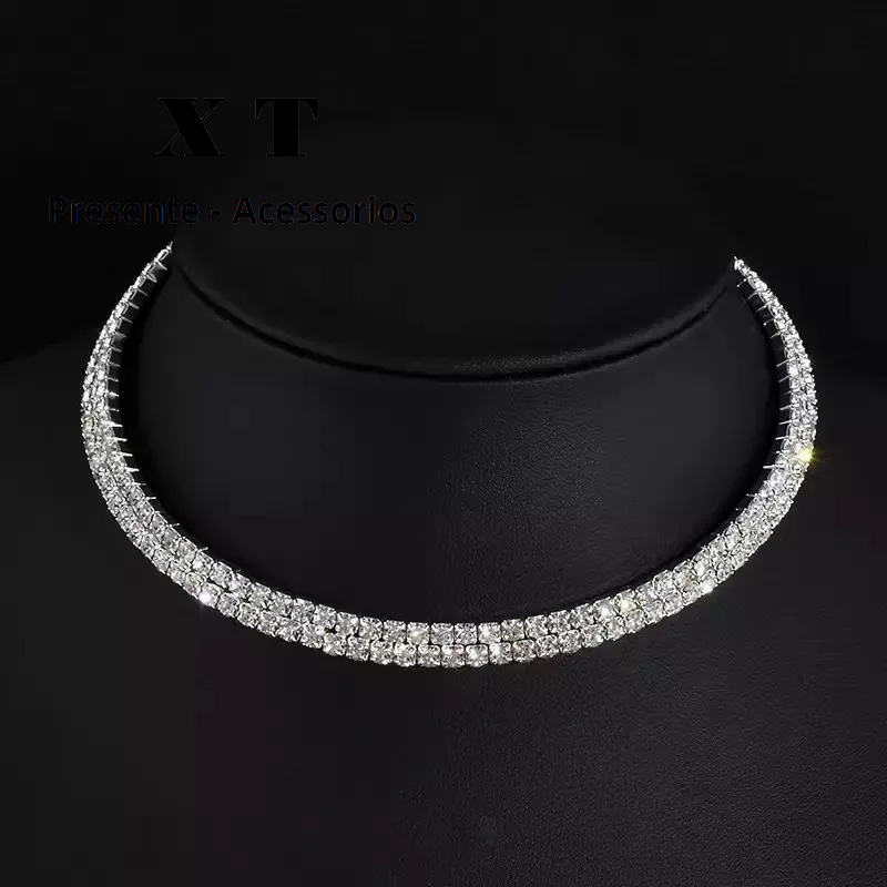 Colar de strass para feminina moda para festa modelo dupla camada/camada unica/tres camada