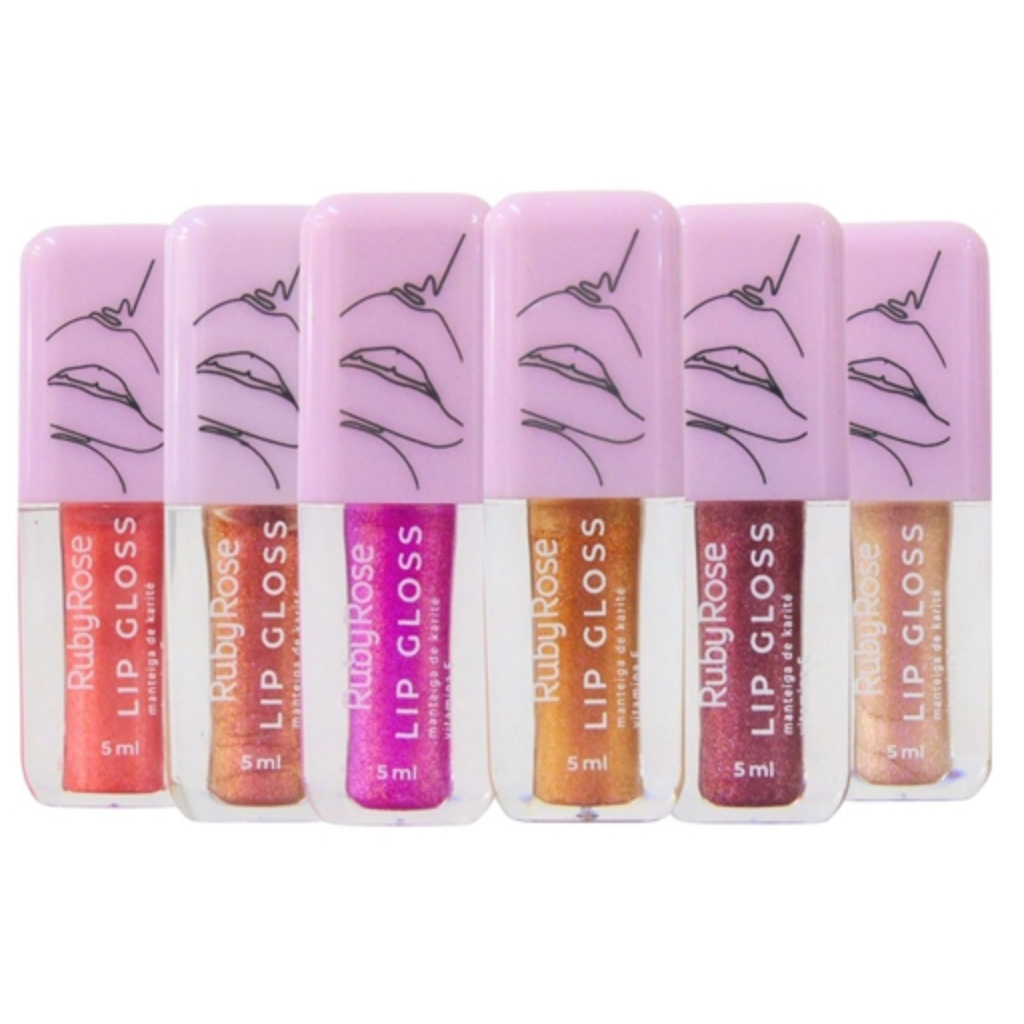 LANÇAMENTO Lip Gloss Ruby Rose com Brilho Gloss Confortavél de Efeito Espelhado e Brilho 2,5ml cada. Gloss com Glitter
