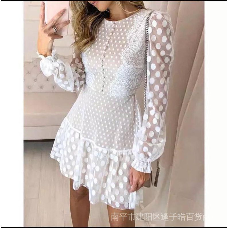 Vestido branco feminino sexy de renda transparente vestido de festa da moda vestidos de bolinhas bordadas