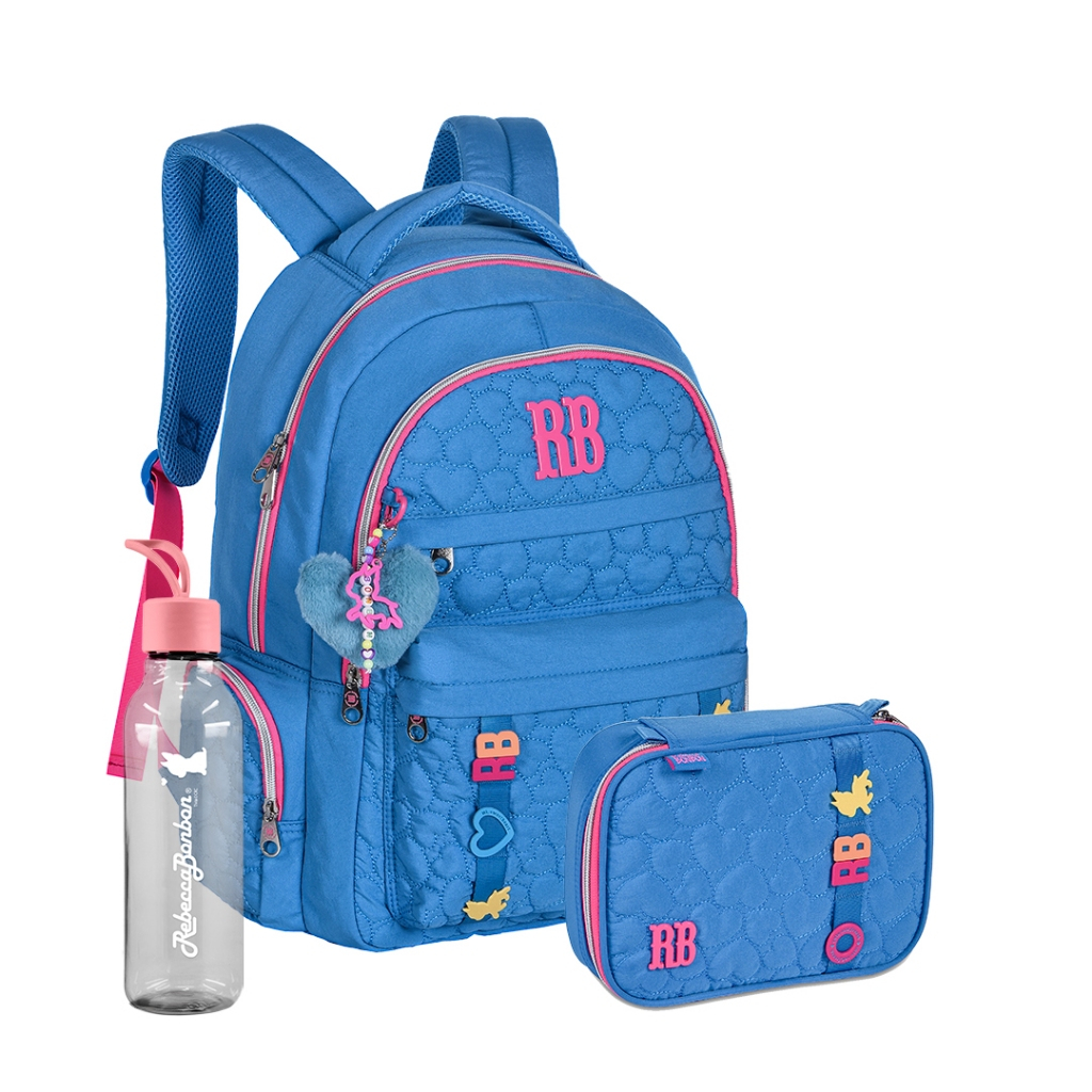 Kit Mochila Estojo Lancheira Squeeze 700ml Oficial Meninas Adolescente Rebecca Bonbon Lancamento Color Pop Esclusivo