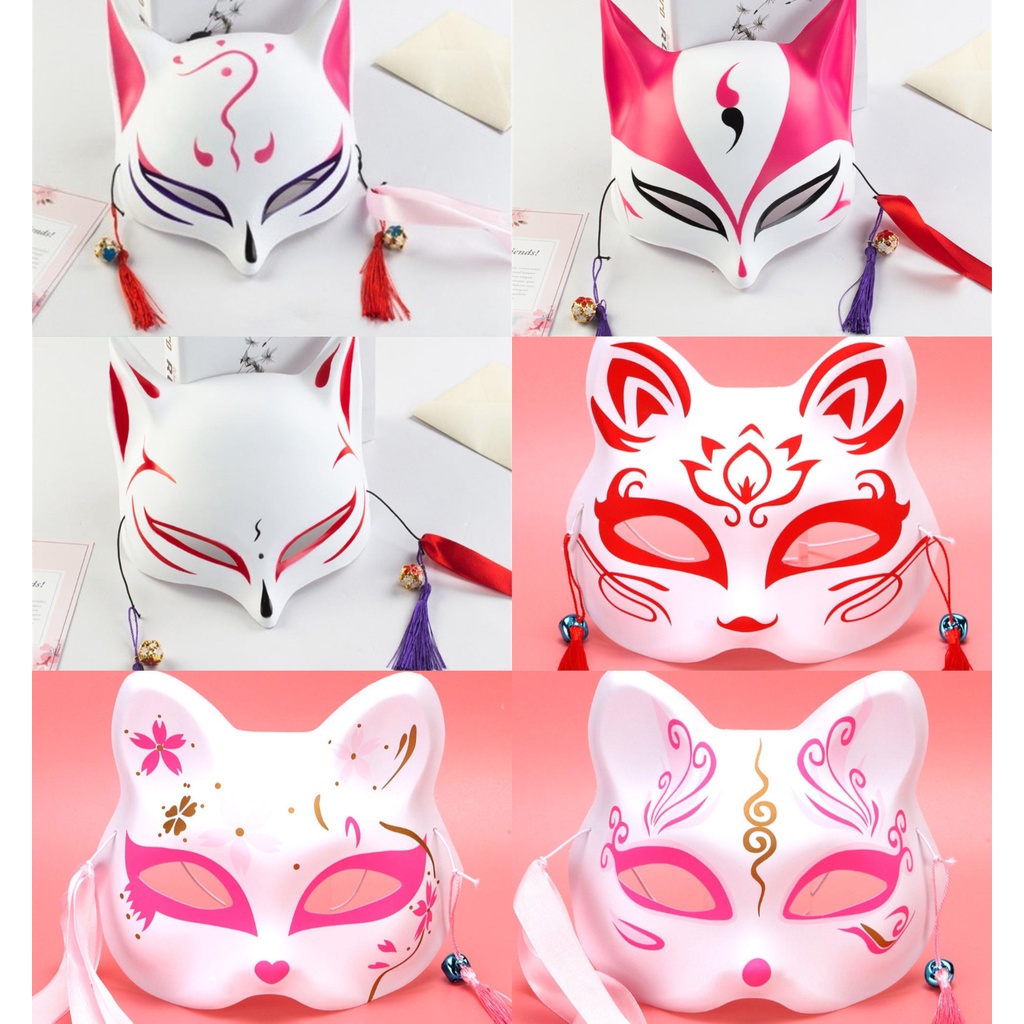 1Pc Máscara Anime Fox De Gato Pintada À Mão Com Borlas De Halloween Festa De Cosplay Props