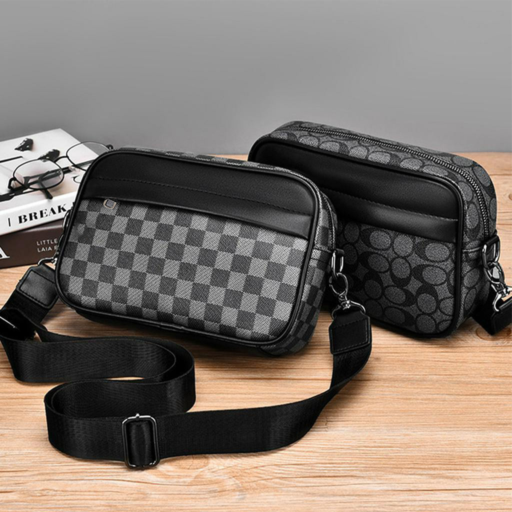 1 PC Moda Estilo De Negócios Cor Sólida Couro PU Com Padrão quadriculado Pequeno Saco Quadrado Para Homens Crossbody Bag