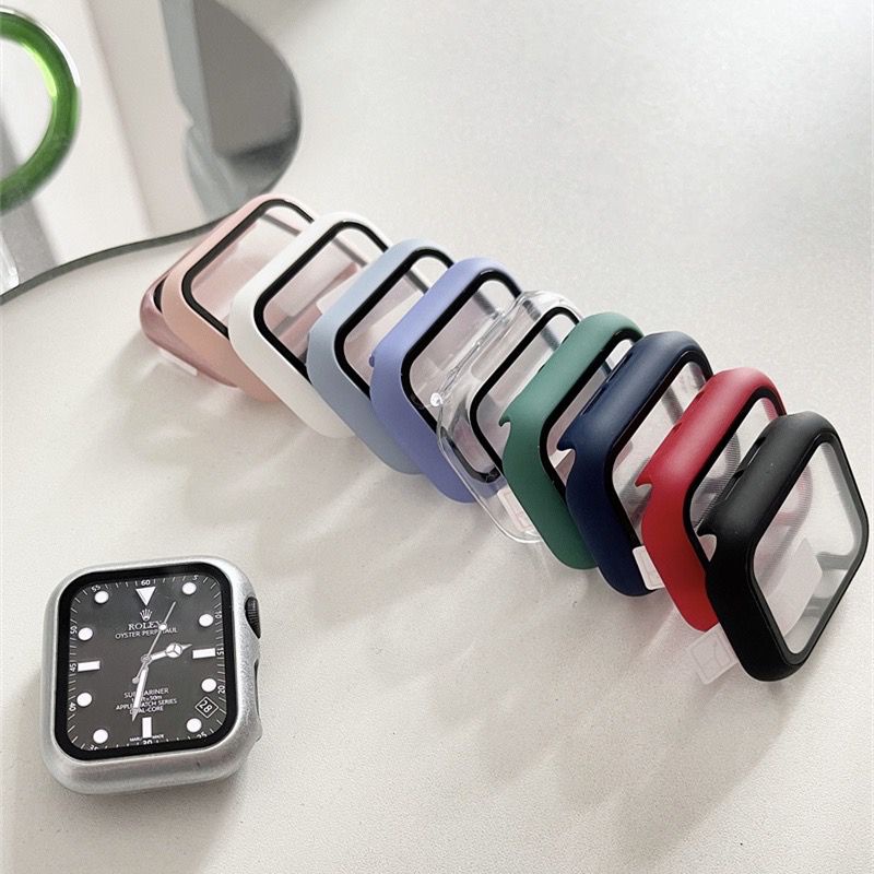 Capa Capinha Case em Acrilico 2 EM 1 Vidro Temperado + Estojo Para Relógio Apple 38MM 40MM 41MM 42MM 44MM 45MM