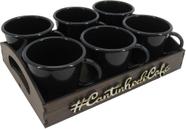 Kit 6 Xícaras Acrílica Preta Com Bandeja Cantinho do Café - SHOPPING DO MDF
