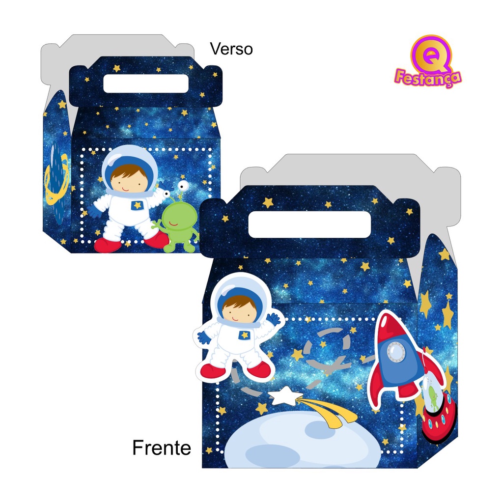 10 Caixas Maleta Astronauta com Personagem e Aplique 3D
