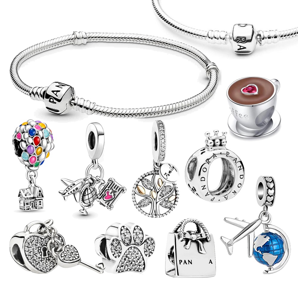 S925 Kit Conjunto Pulseira Bracelete Pan com Berloque Pingente Charmes De Prata 925 Charms Charme Com Caixa Bolsa