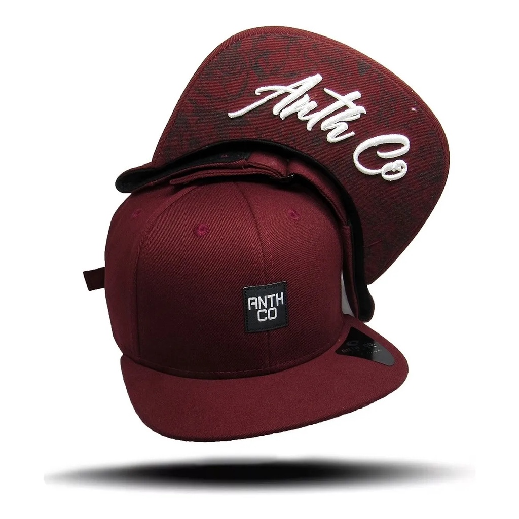 Boné Masculino Aba Reta Modelo Aberto Anth Co Fitão Bordô Envio Imediato