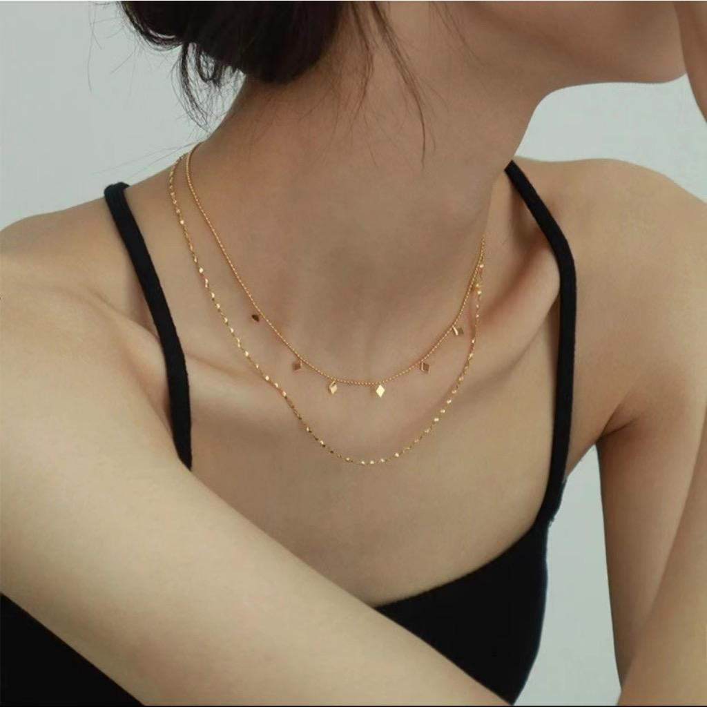 Colar Choker duplo pingente coracao estrelas ponto de luz terco feminino folheado banhada a ouro 18k