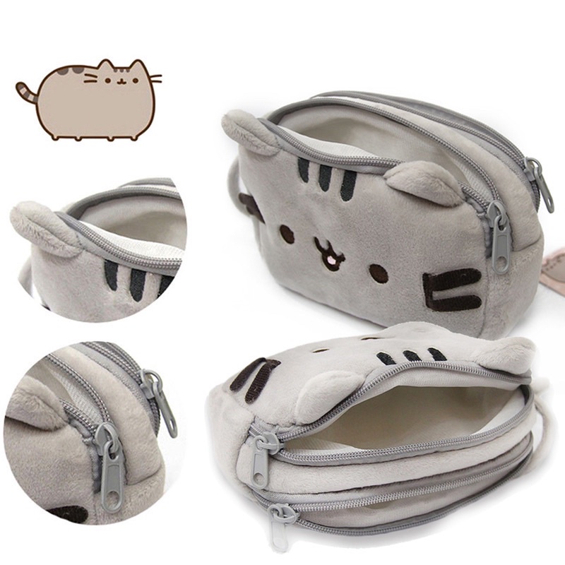 Kawaii Estojo De Lápis De Pelúcia Para Gato Duas Camadas Saco Cartoon Bonito Papelaria Cosméticos Escolas Suprimentos De Escritório