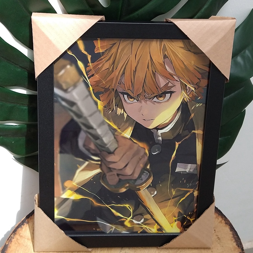 Quadro decorativo com moldura e vidro Zenitsu Demon Slayer Kimetsu no yaiba anime pôster geek tanjiro inosuke