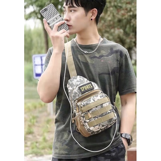 Pochete Militar De Nylon Bolsa De Ombro Transversal Com Suporte De Água Homens ou Mulheres Bolsa De Camuflada Entrada Pra Fone e Carregador Esportiva Super Prática - Envio Imediato