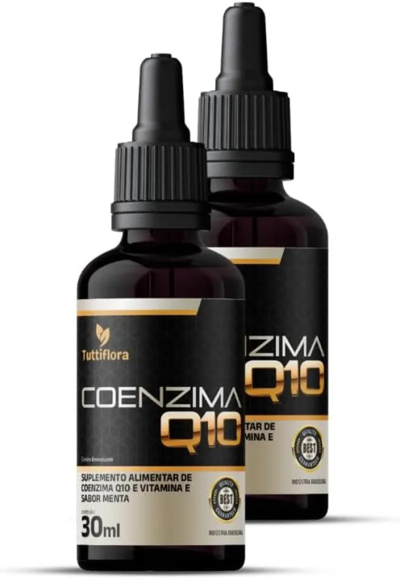 KIT COM 02- COENZIMA Q10 100MG POR PORçãO (UBIQUINONA) COM VITAMINA E EM GOTAS SABOR MENTA 30ML TUTTIFLORA