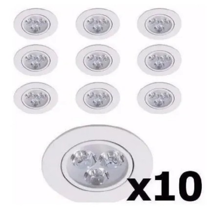 Kit 10 Spot Dicroica Super Led Redondo Embutir Sanca 3w Branco Frio