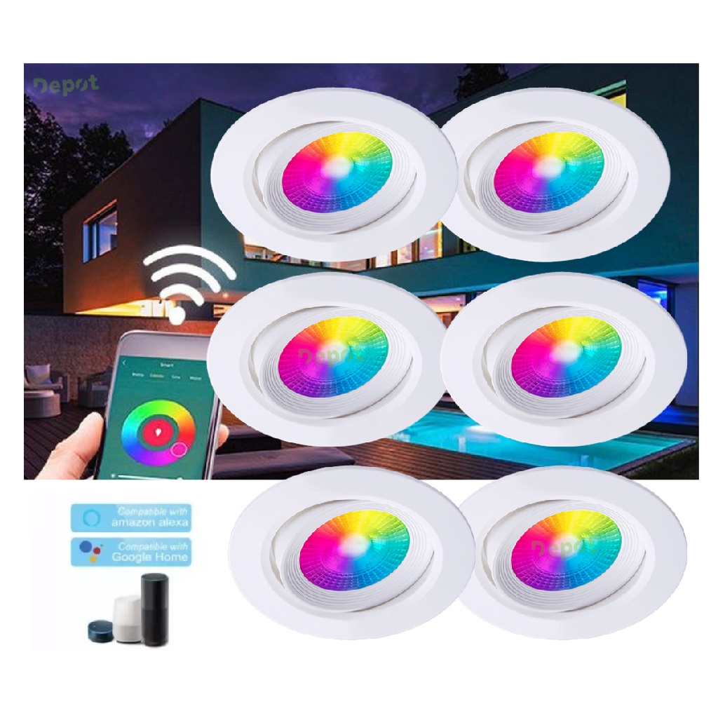 Kit 6 Spot De Led Embutir 5W Rgb Redondo Dicróica Smart Inteligente Bivolt Taschibra