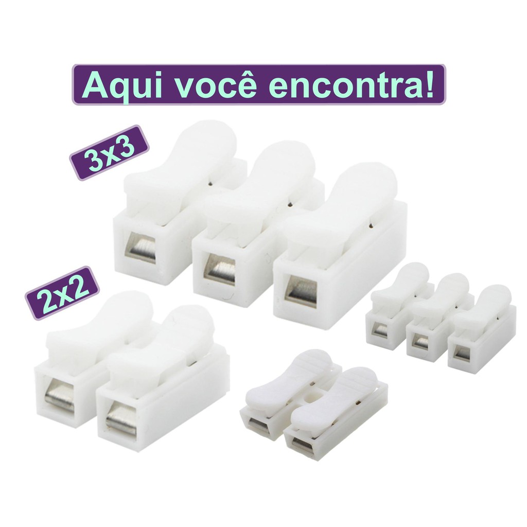 Kit Com 10/20/30/40 Conector Emenda Derivacao Pressao Sem Solda Sem Parafusos Conexao Rapida Auto Travamento Terminal 2x2 Fios 3x3 Fios Vias Dupla Ou Tripla Cabos Eletricos Auto Bloqueio Para Fios Ate 2.5mm