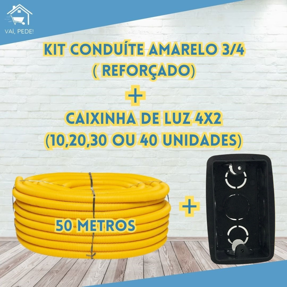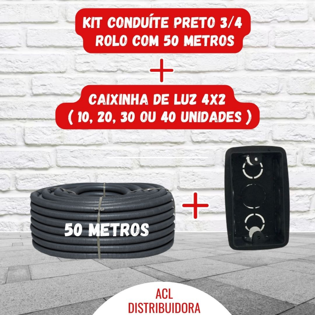 Kit Conduíte 3/4 50m + Caixinhas de Luz 4x2 Preta (10-20-30 ou 40 unidades)