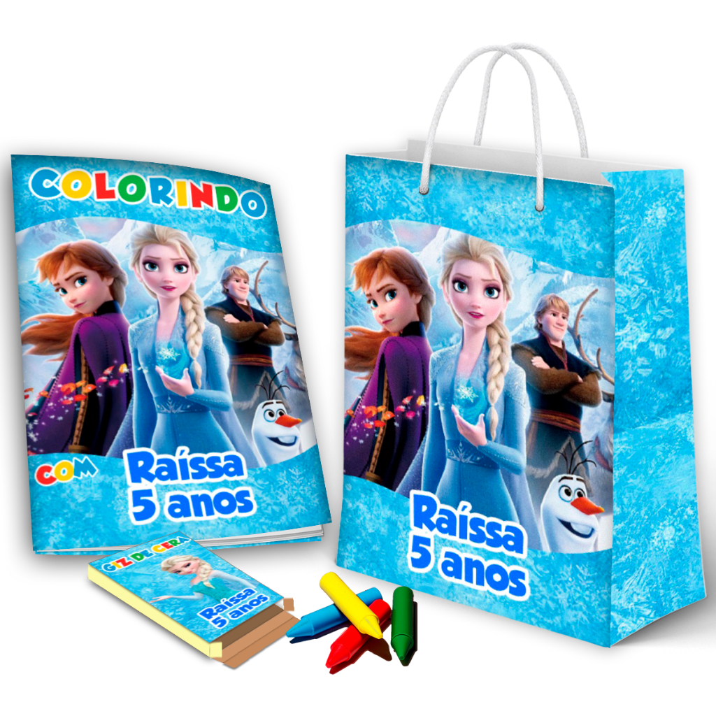 10, 20, 30 ou 40 sacolinha + revistinha de colorir + giz de cera frozen 2 kit festa de aniversário (envio rápido)
