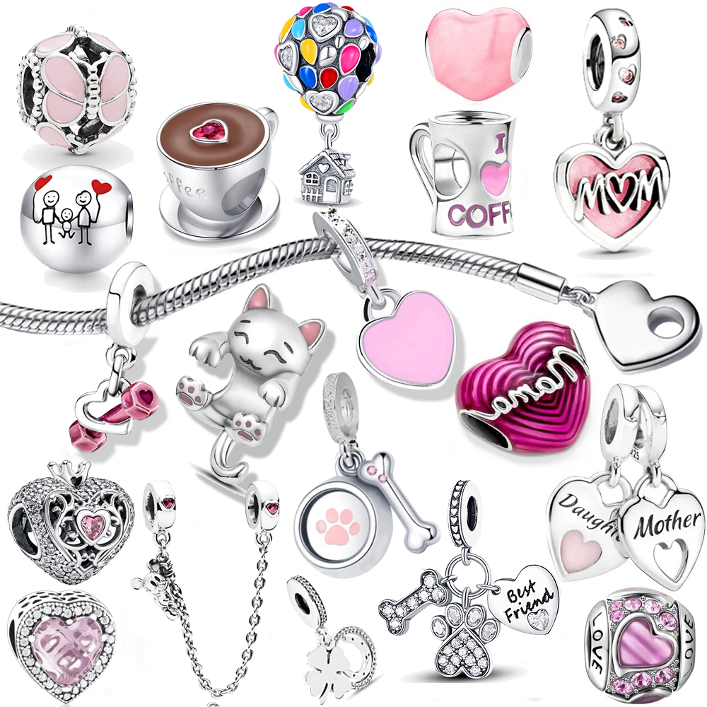 P Pingente De Charme Berloque Amuletos Da Série MOM Amor De Prata 925 Coração Rosa