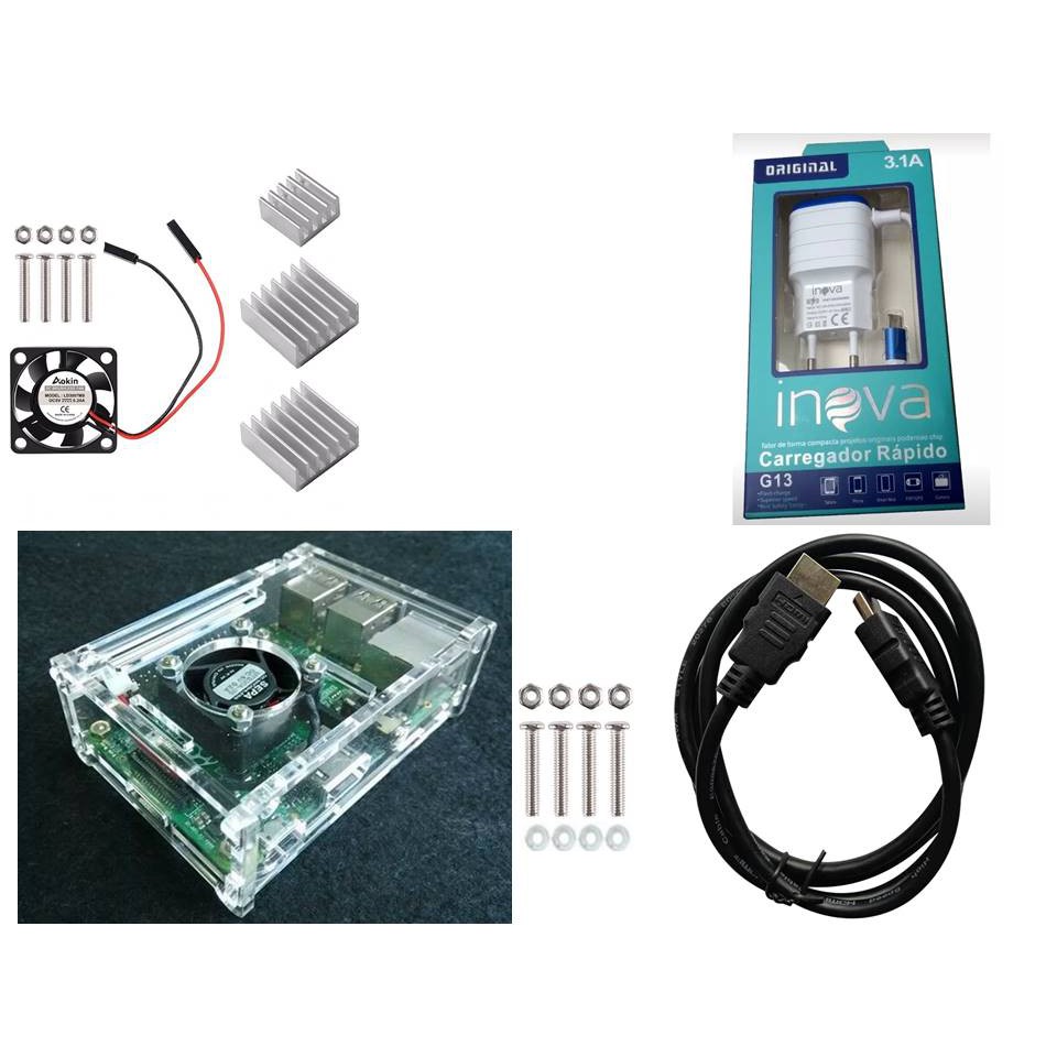 Case p/ Raspberry Pi3(b) + Cooler + dissipadores + fonte+ Cabo hdmi