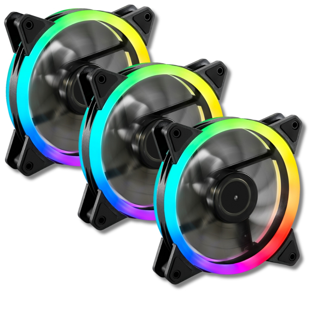 Kit 3 Cooler Fan Led RGB 120mm 12cm Gabinete Pc Gamer Ventoinha