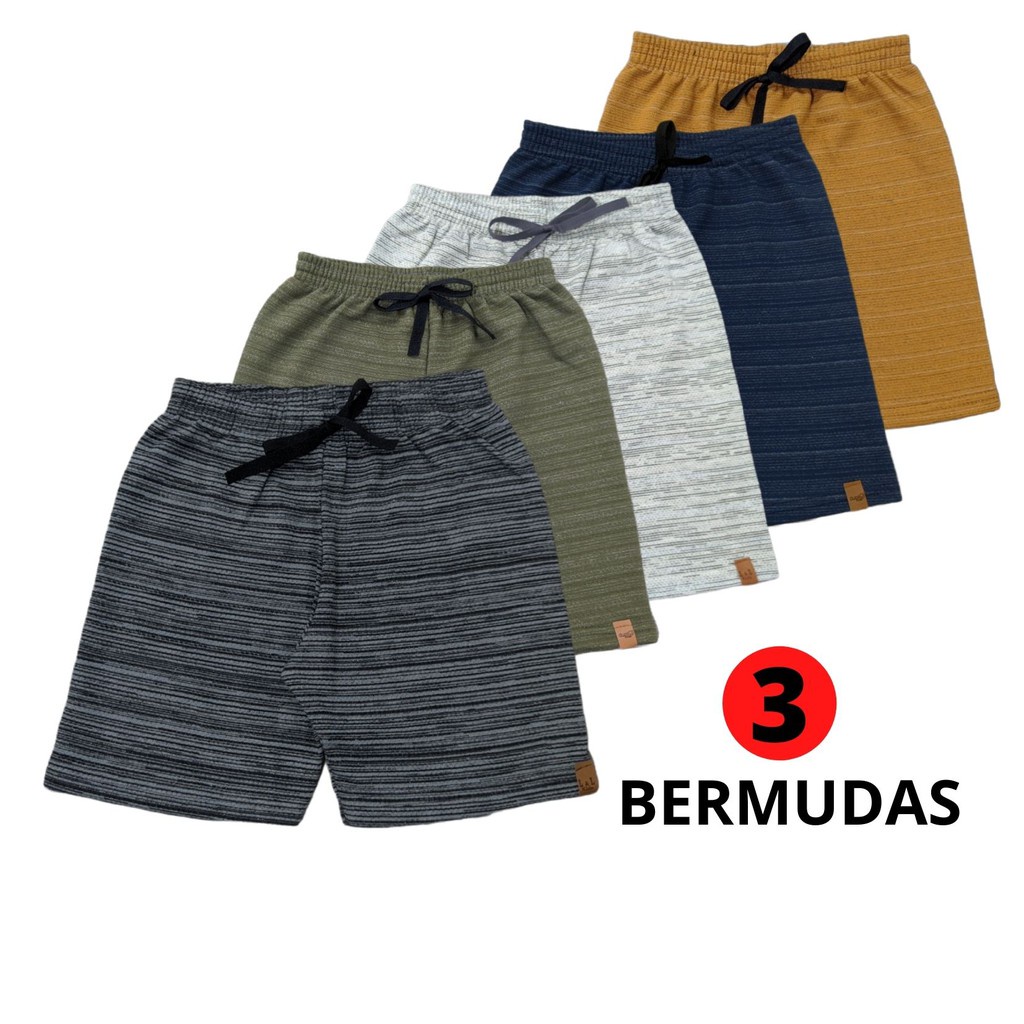 Kit 3 Bermudas/Shorts Menino Verão Moletinho Cores Sortidas 1 ao 16