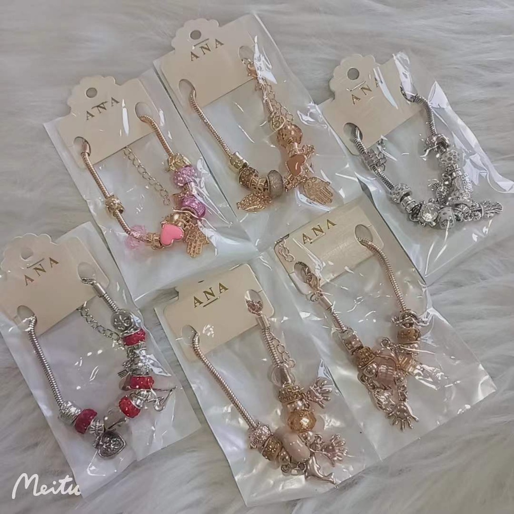 Pulseira em Dourado Rosa Prata 925 com Diferentes Pingentes mulheres charme bracelete jóias