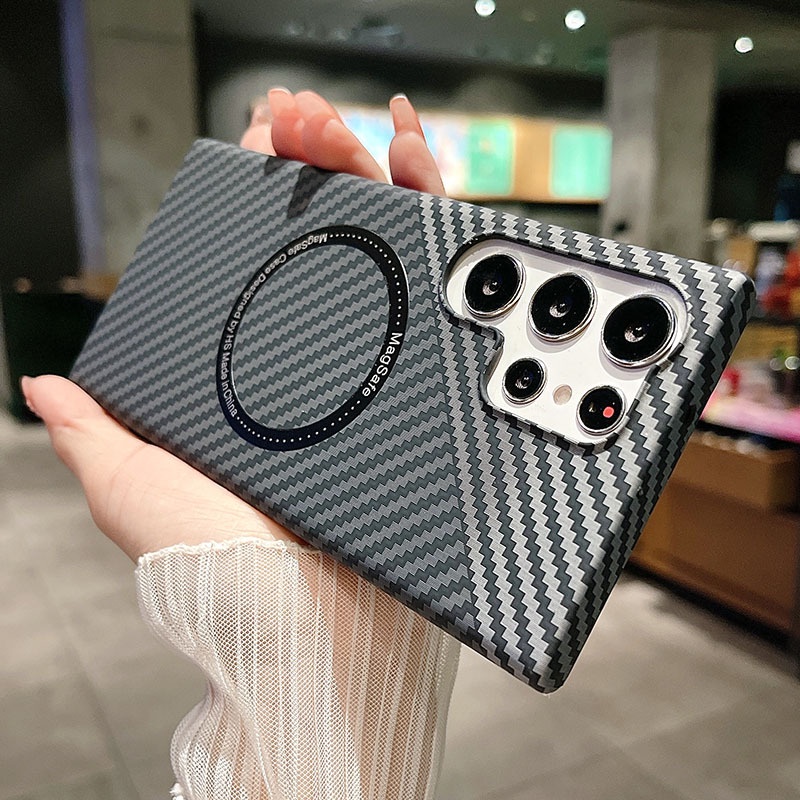 Capa Plástica Dura De Fibra De Carbono Para Samsung Galaxy S23 S22 S21 Ultra Plus Carregamento Magnético Sem Fio