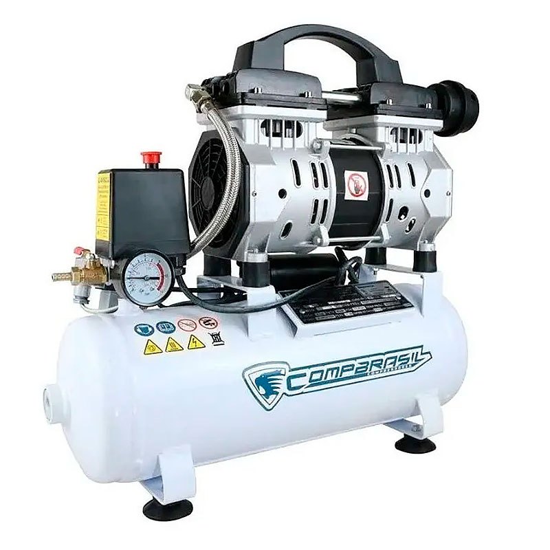 Compressor de Ar CompBrasil Silencioso Isento de Óleo 8L 5pcm 220v