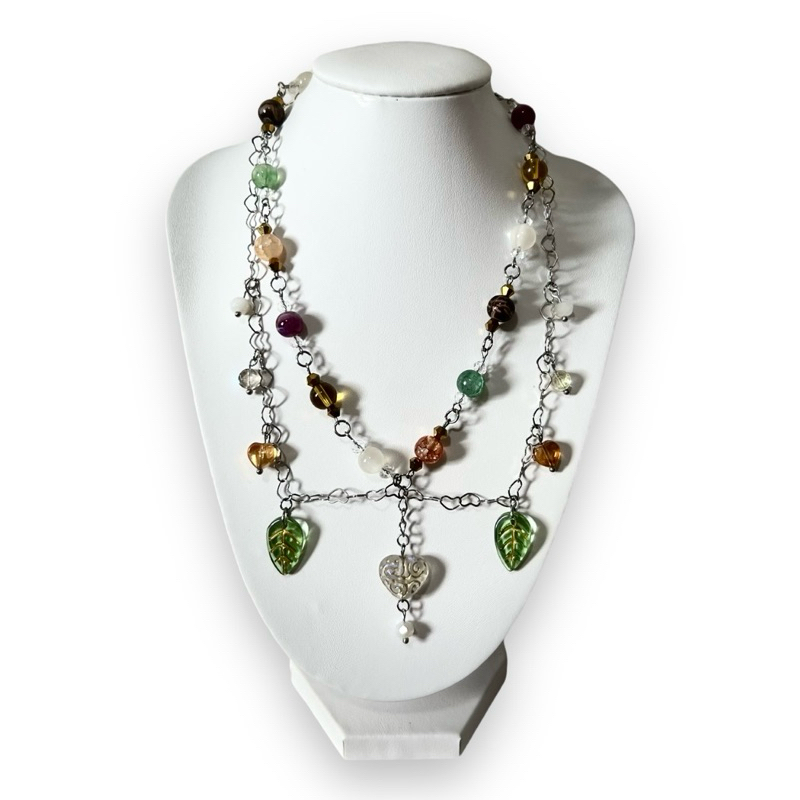 Colar Autumn Love: Colar em Aço Inoxidável, cristais, vidro, poliresina e pmma