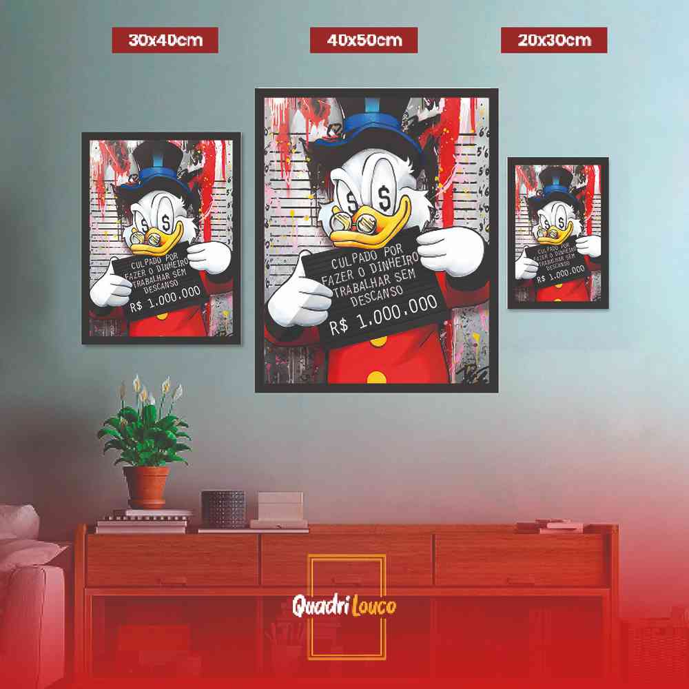 Quadro do tio Patinhas "culpado por fazer dinheiro"