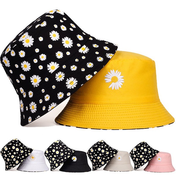 chapéu unisex balde bordado pequenas margaridas dupla face bucket hat