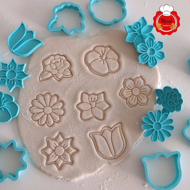 8pcs/set Cortadores De Biscoitos Em Forma De Flor 3D Molde Plástico Carimbo De Biscoito Fondant Bolo De Cozinha Pastelaria