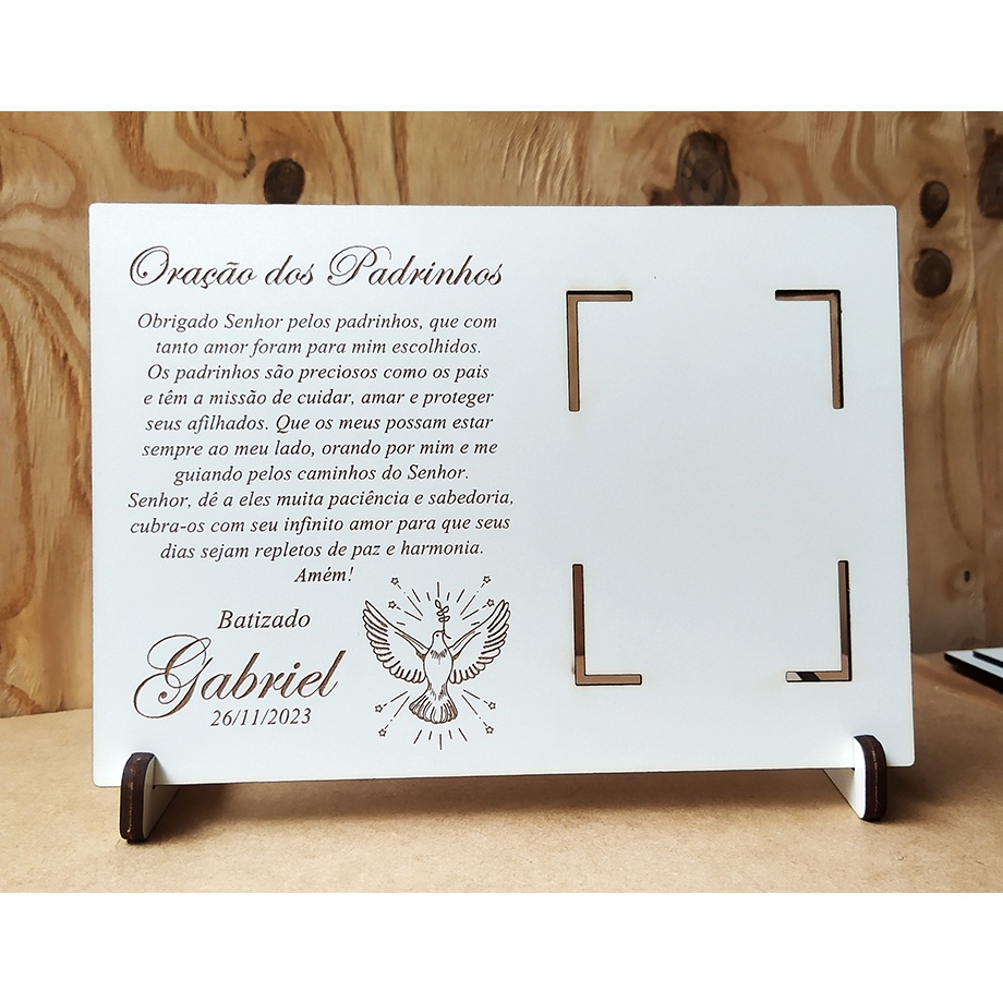 Mini Porta Retrato Infantil Batizado aos Padrinhos em MDF - Vários Modelos