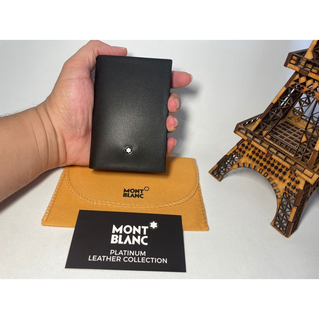 Carteira Slim Porta Cartão Mont Blanc Couro Legítimo Preto Liso Masculino Premium Top