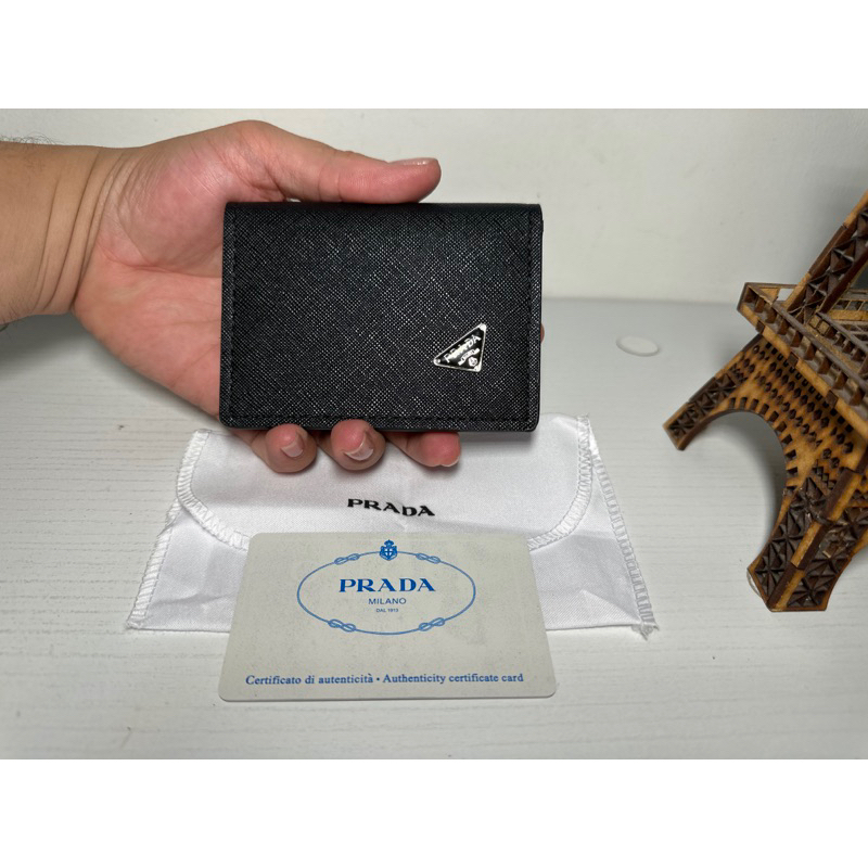 PORTA CARTÃO MASCULINO COURO LEGÍTIMO SAFFIANO TEXTURIZADO PRETO LEGÍTIMO TOP PREMIUM PRADDA